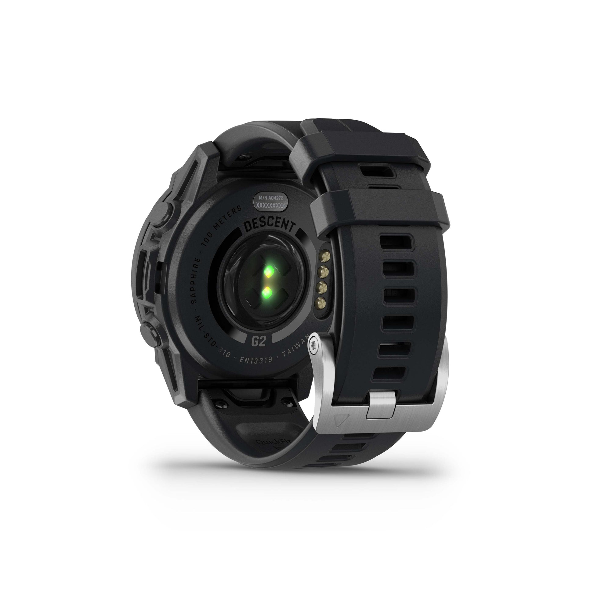 The 1.2-inch AMOLED display provides easy reading at any depth, with a sapphire lens and leakproof buttons — plus a 10 ATM dive rating.