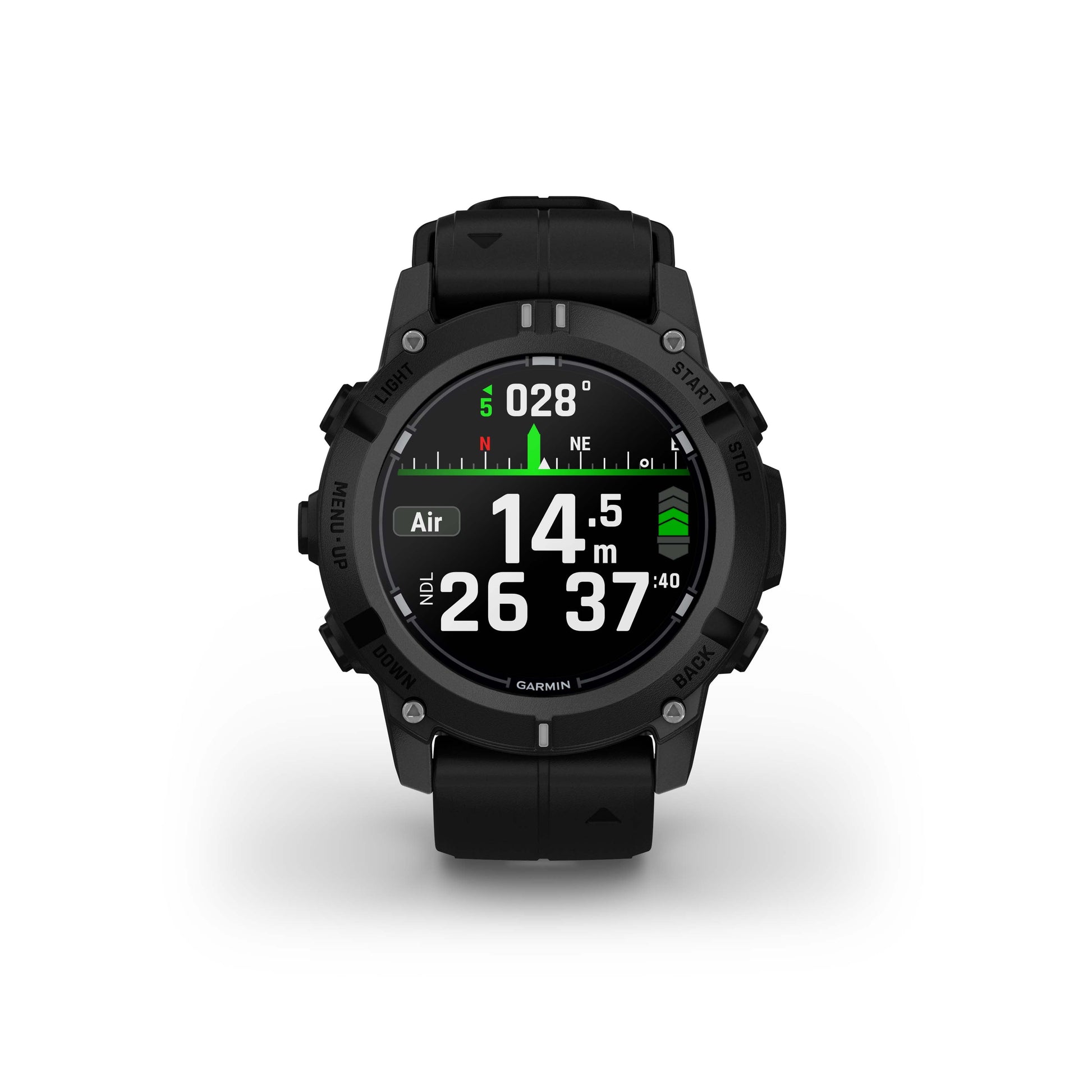 Store dive logs on device, and review in the Garmin Dive app.